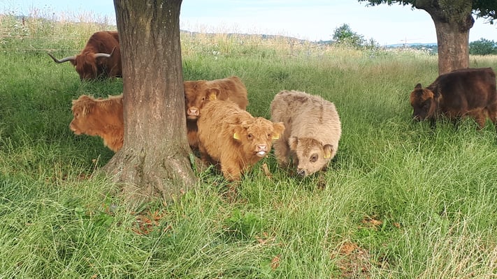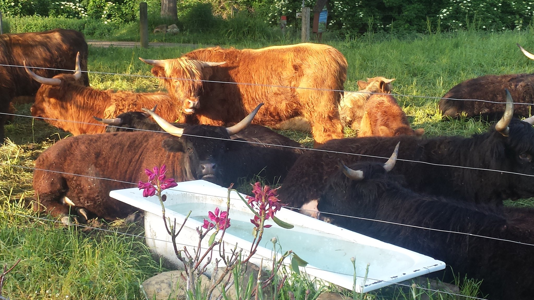 20 Hochlandrinder haben die Milchkühe abgelöst. Auf 9 ha wird Weizen, auf 5 ha Körnermais, auf 2 ha Ölraps, und knapp einer ha Speisekartoffeln angebaut. 200 Aren Rotationsbrache in Form einer prächtig blühenden Blumenwiese runden die Ackerfläche ab. Der restliche Boden (als Ackerland ungeeignet) wird als Ökowiese und Weide für die Highland Cattles gebraucht. 100 Hochstammobstbäume geben diesem Betriebszweig ein besonderes Flair.