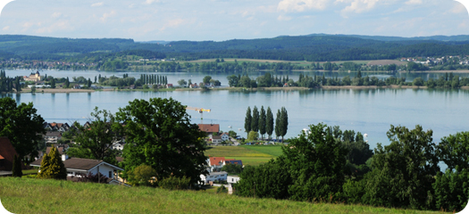 fern. Die Umgebung ist ein wahres Wander- und Veloparadies. Im idyllischen Strandbad kann man die Seele baumeln lassen und die herrliche Lage am See geniessen.Mit Schiff oder Bahn ist von